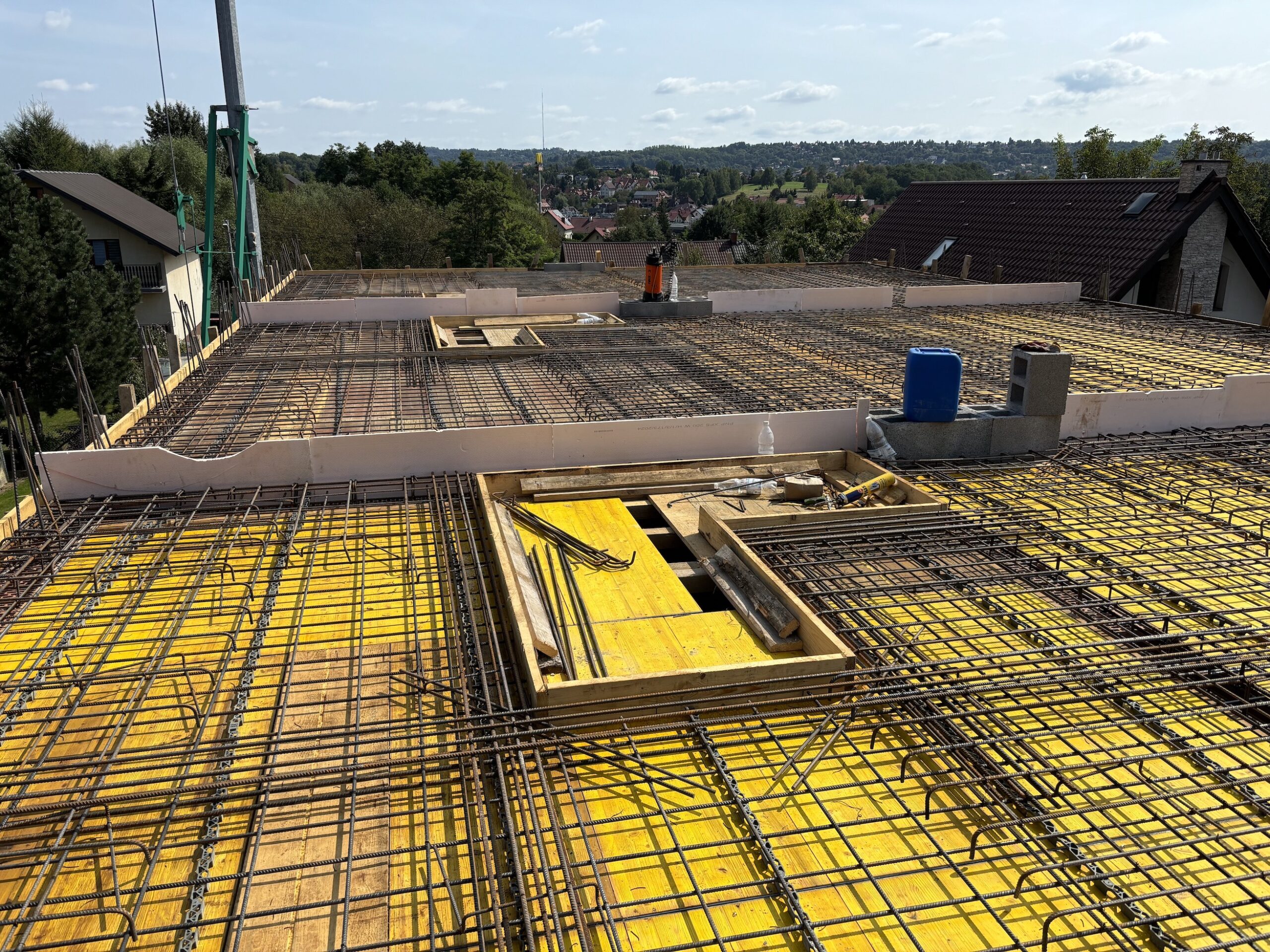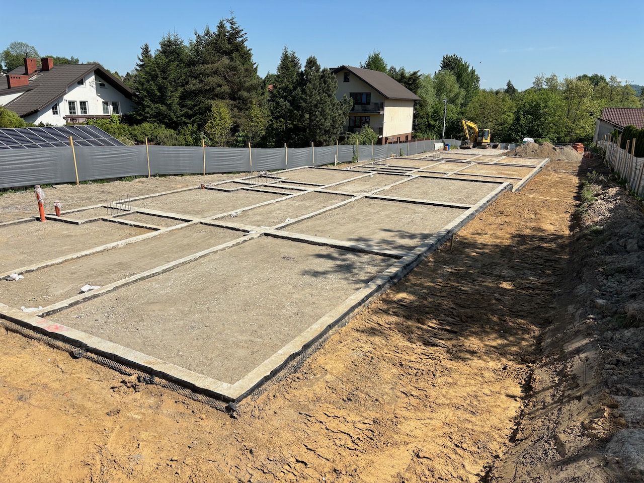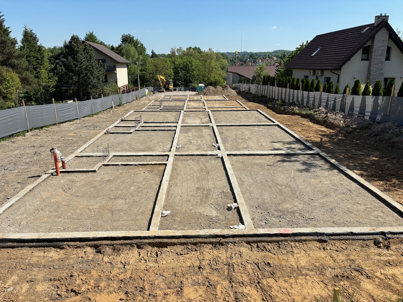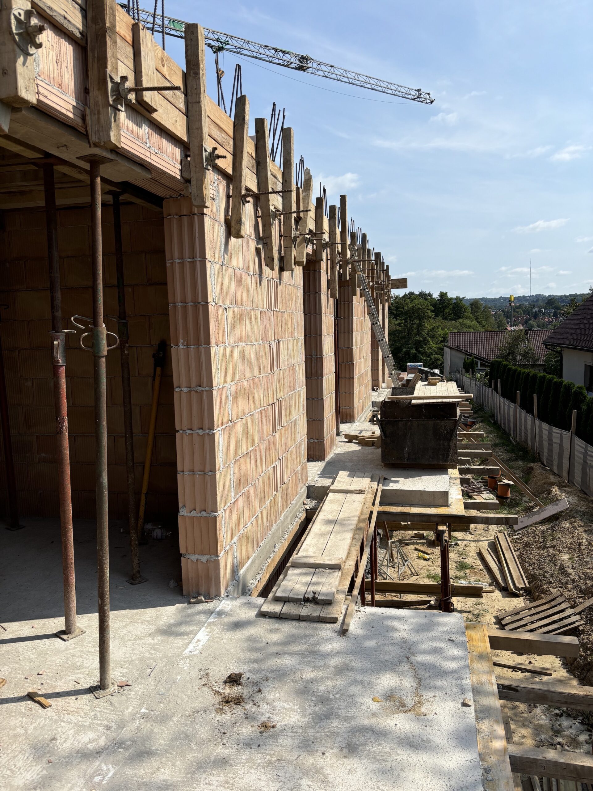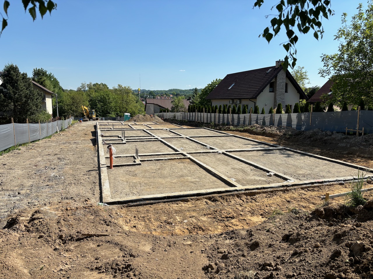wokół budynków wyrównany i przygotowany pod trawę, tarasy, podjazdy i